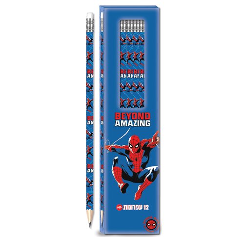 12 قلم رصاص مع ممحاة مصممة بصورة سبايدرمان