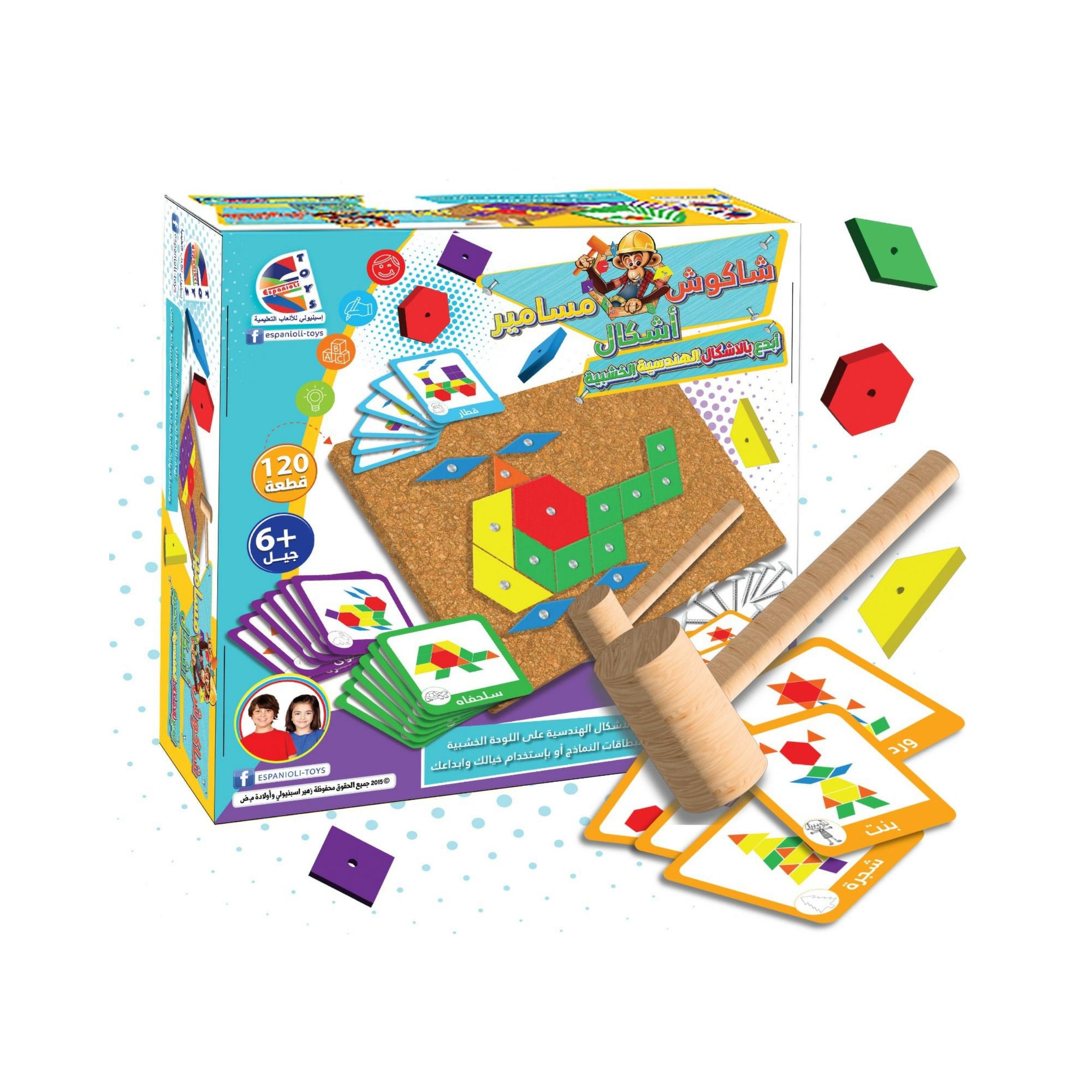 لعبة تعليمية ممتعة تساعد الأطفال على تنمية مهارات التفكير والتركيب من خلال إنشاء أشكال مختلفة باستخدام القطع الهندسية والمسامير.