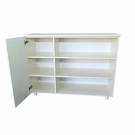خزانة تخزين مع باب جانبي وأرفف مفتوحة