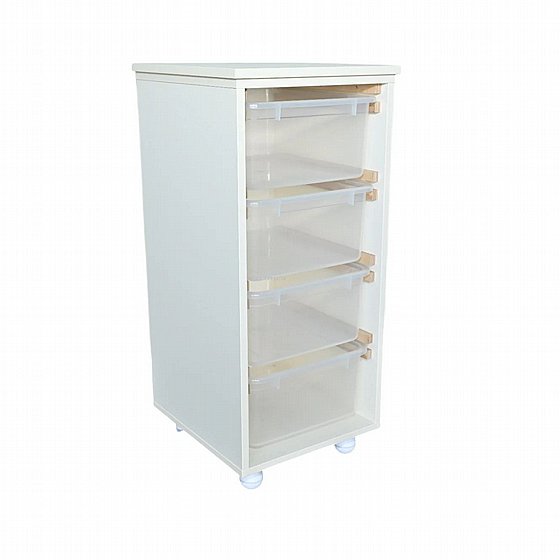 تتكوّن من هيكل خشبي متين مع صناديق بلاستيكية قابلة للسحب، مناسبة للاستخدام اليومي في الصفوف وزوايا النشاط.