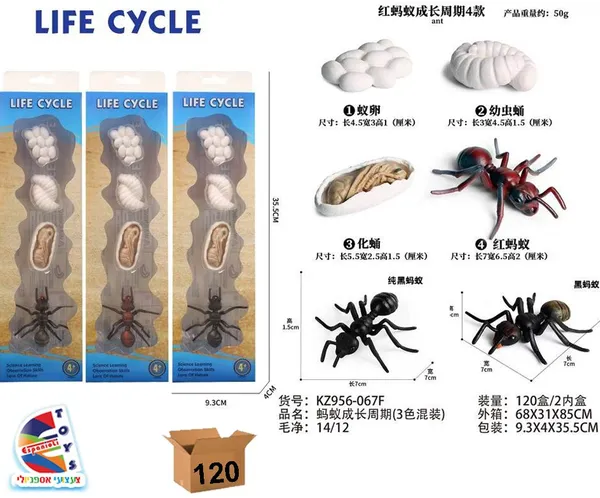 مجموعة تعليمية توضح مراحل نمو النملة من البيضة وحتى النملة البالغة، باستخدام مجسّمات ثلاثية الأبعاد تساعد الأطفال على فهم دورة الحياة والحشرات بشكل مبسّط.