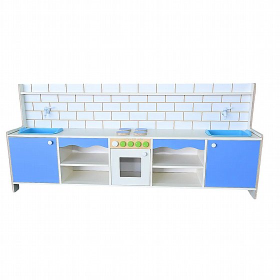 تحتوي على وحدات مطبخ متكاملة تشمل مغاسل، خزائن ومساحات تخزين، وتسمح بمشاركة أكثر من طفل في اللعب.
