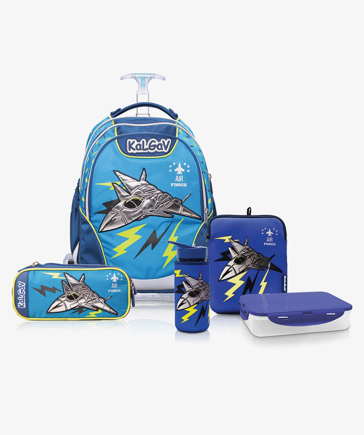 طقم كامل مكون من 5 قطع – حقيبة طبية باعلى جودة ومواصفات عالمية وعربة جر خفيفة قابلة للفك, مقلمة سحابين قابلة للتوسيع,مطرة وعلبة أكل حرارية