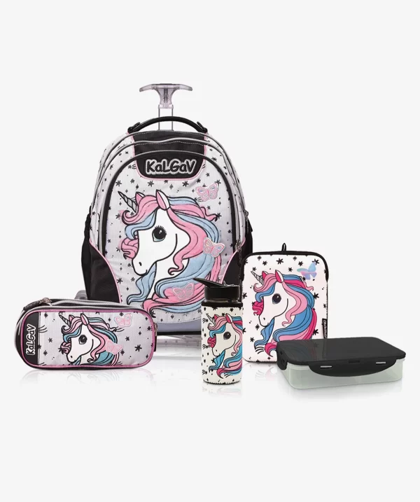 طقم كامل مكون من 5 قطع – حقيبة طبية باعلى جودة ومواصفات عالمية وعربة جر خفيفة قابلة للفك, مقلمة سحابين قابلة للتوسيع,مطرة وعلبة أكل حرارية