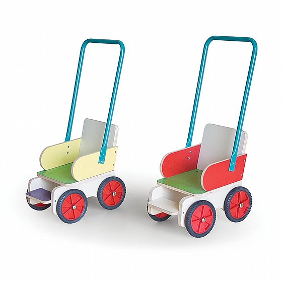 عربة دمى خشبية للأطفال، مخصصة للعب التخيلي ومساعدة الطفل على المشي في نفس الوقت.