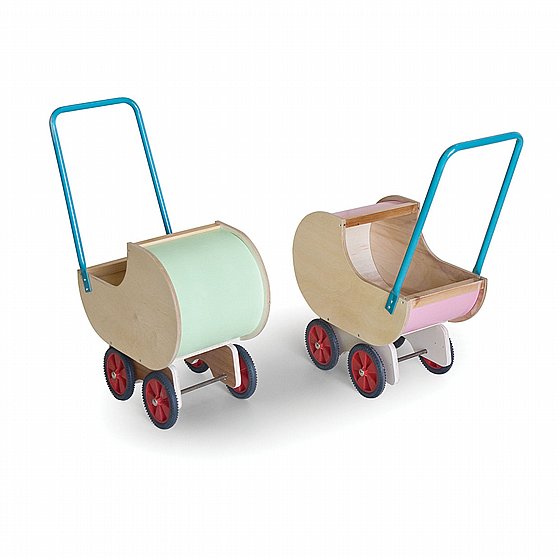 عربة دمى خشبية للأطفال، مخصصة للعب التخيلي ومساعدة الطفل على المشي في نفس الوقت.