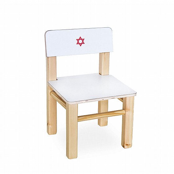كرسي خشبي تعليمي لزاوية الطبيب للأطفال، مصمم ليكون جزءًا من ركن العيادة أو اللعب التخيلي.