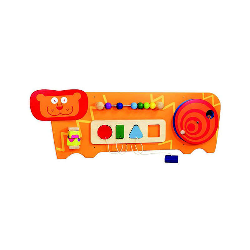 لعبة حائط على شكل أسد ملوّن، تضم مجموعة أنشطة حسّية وتعليمية مثل الخرز المتحرّك، الأشكال الهندسية، المسارات الدوّارة، والعناصر التفاعلية. تُثبَّت على الحائط لتوفير مساحة آمنة للّعب، وتساعد الأطفال على تنمية المهارات الحركية الدقيقة، التفكير المنطقي، والتنسيق بين اليد والعين. مناسبة للحضانات، رياض الأطفال، وزوايا اللعب التعليمية.