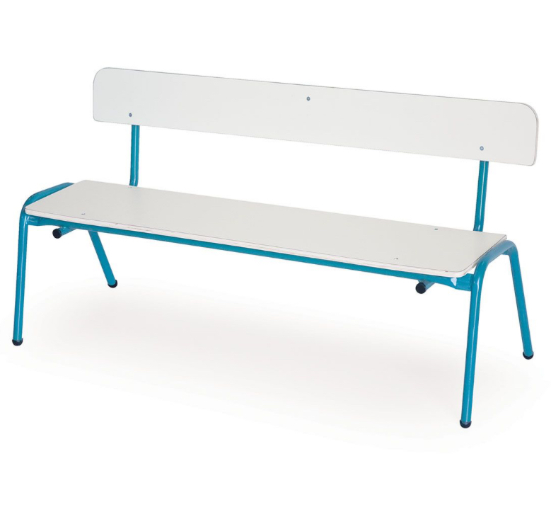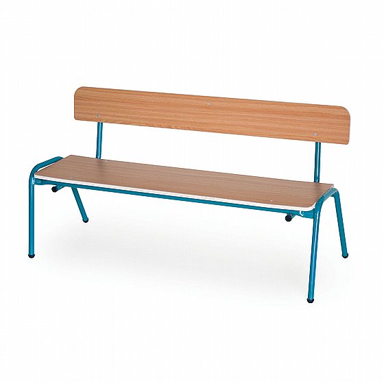 مقعد تعليمي للأطفال بهيكل معدني ومقعد ومسند ظهر من الخشب (بوك)، مصمم للجلوس المريح والآمن أثناء الاستراحة أو الأنشطة الجماعية.