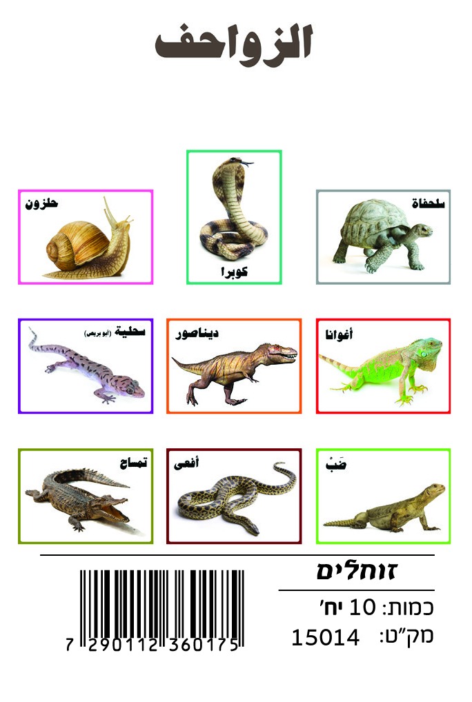 تعرّف اللوحة الأطفال على مجموعة من الزواحف من خلال صور واضحة، مثل: